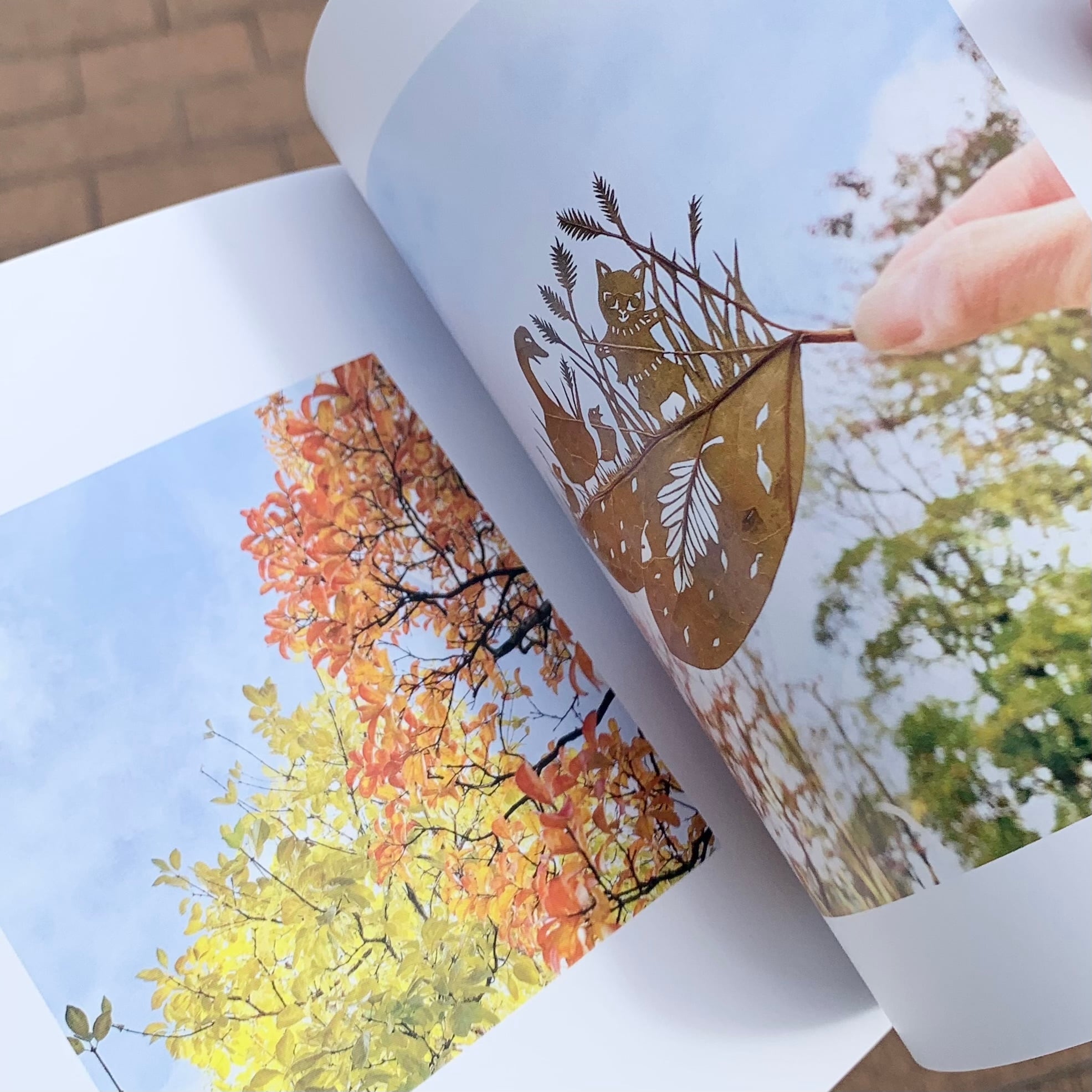 今にも動き出しそうな動物と子ども達が活躍する、葉切り絵の物語。その手のひらで繰り広げられる葉切り絵の世界へ没入していただけたら嬉しいです。